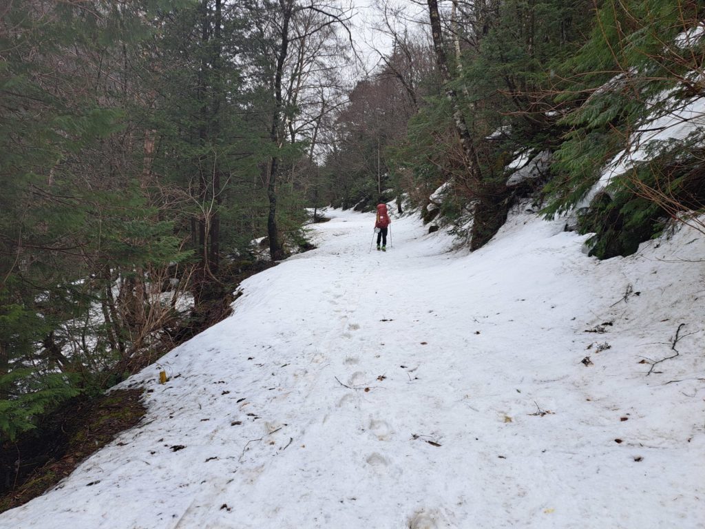 雪が緩んで登りやすい為アイゼンは必要ないものの、かなり急。コルに出るのが大変だった。