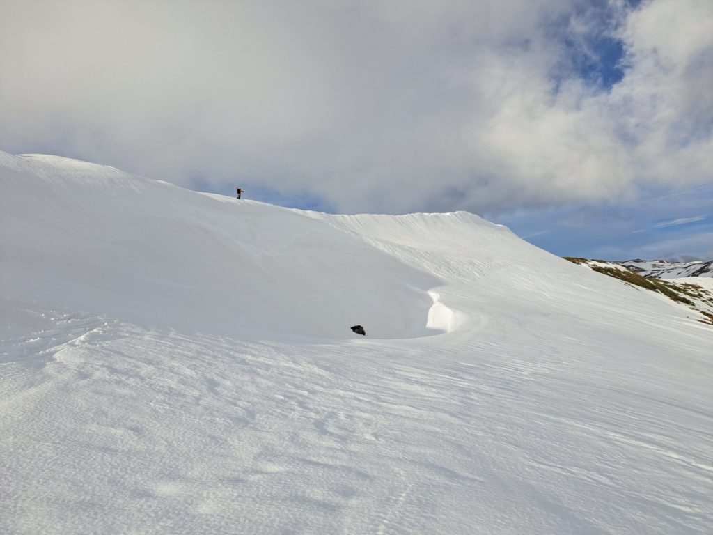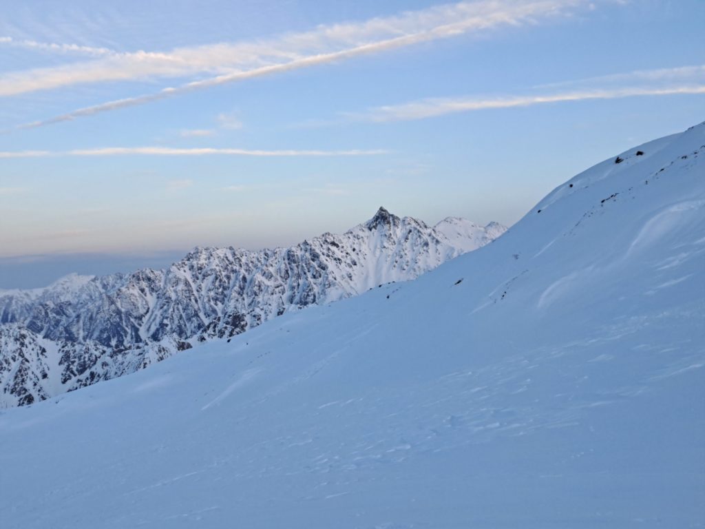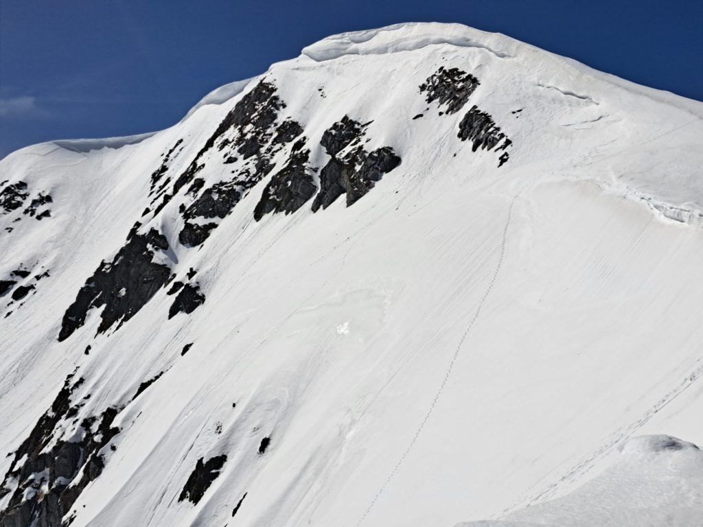 山頂直下にスラフが発生したので、念のため少し離れておく。