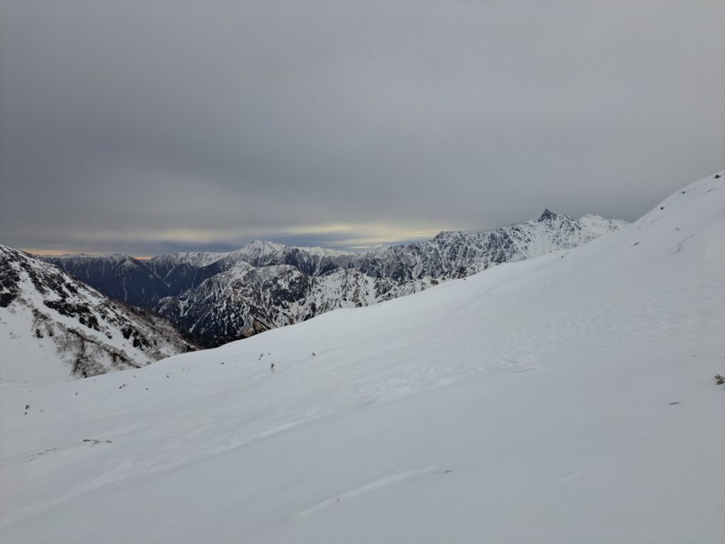 一気に標高を上げると、槍穂高連峰の稜線が見渡せた。