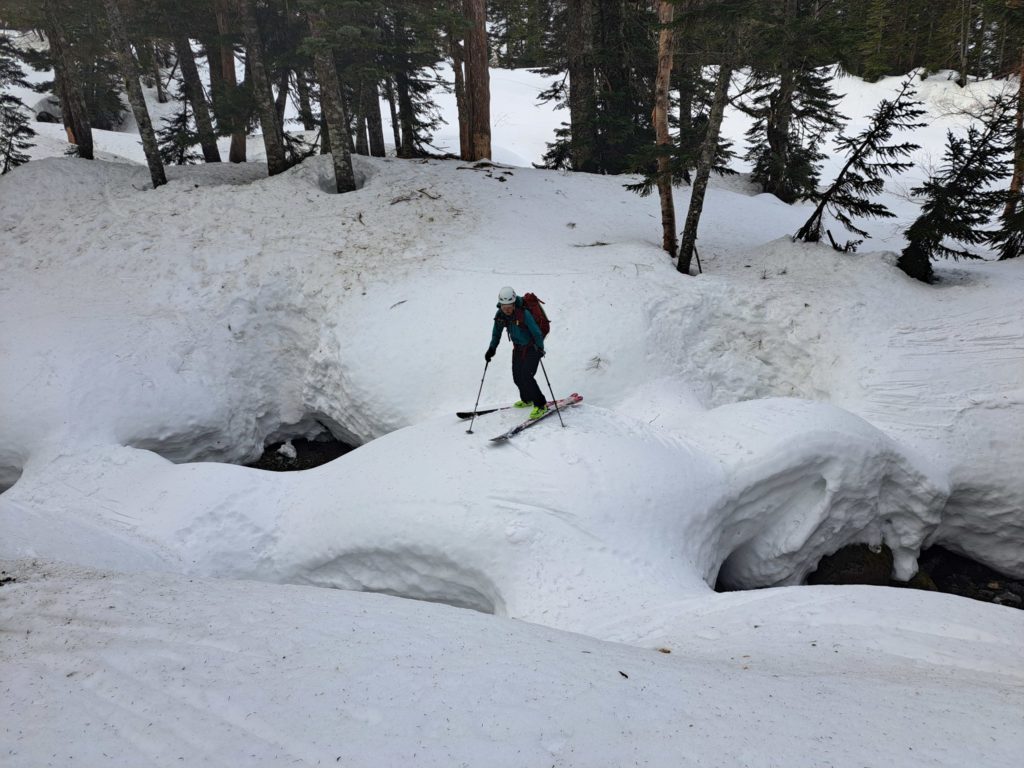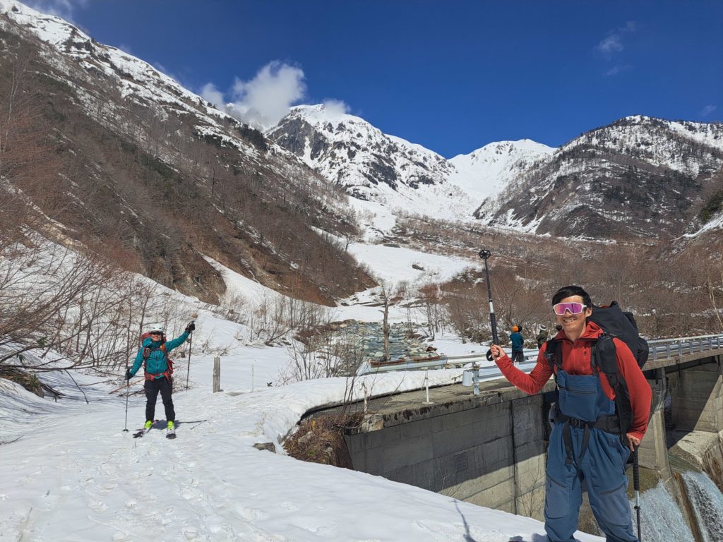 ほどよい緩みの雪と斜面が滑ってて楽しい。二俣まで一瞬で降りてこれた。