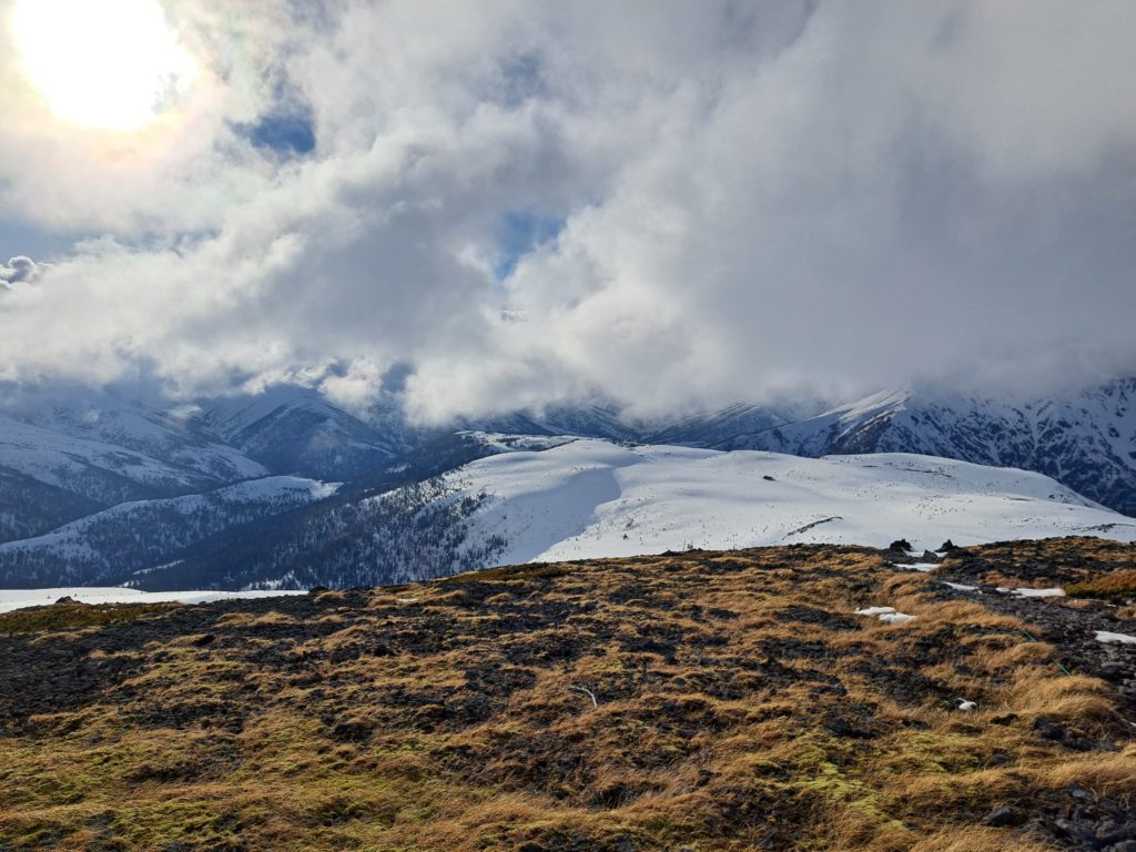 薄い雪にハイマツが埋まっているらしく、わかちゃんが踏み抜いて落ちた。