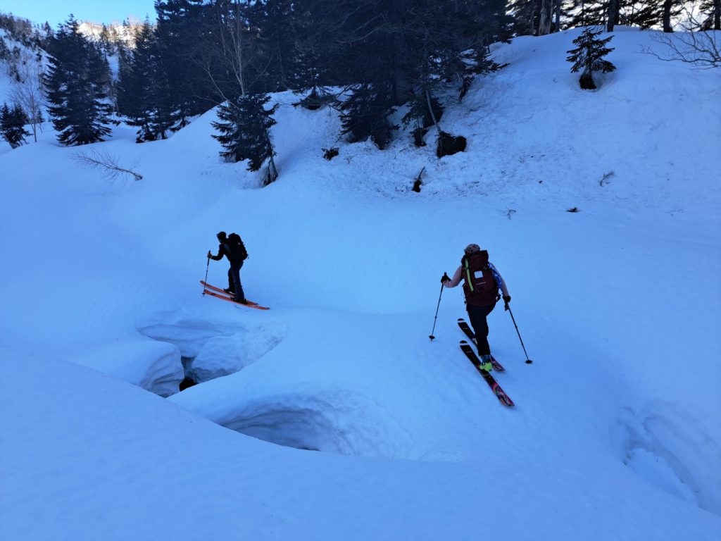 Co1200からスキー。途中でデブリを超える。