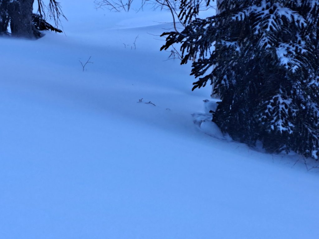 木の近くにライチョウのフンが大量に落ちている。彼らもココで暮らしているのだろう。少しお邪魔します。