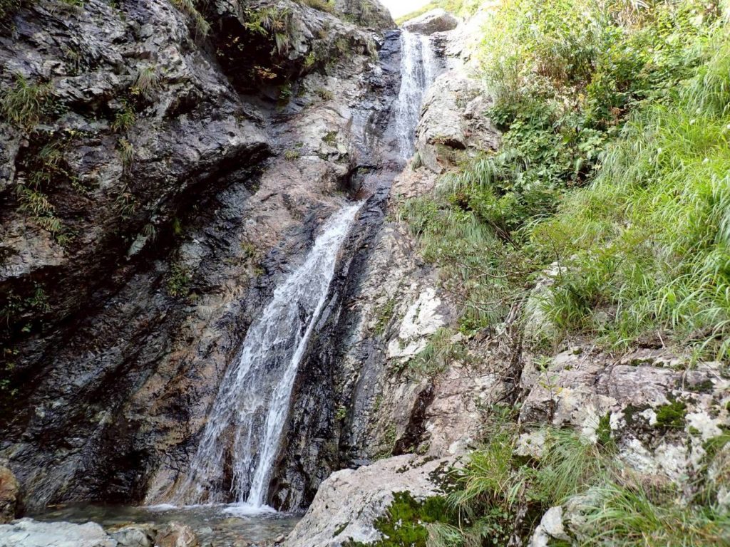 どう見ても登れない2段の滝。右岸の草付きから巻く。