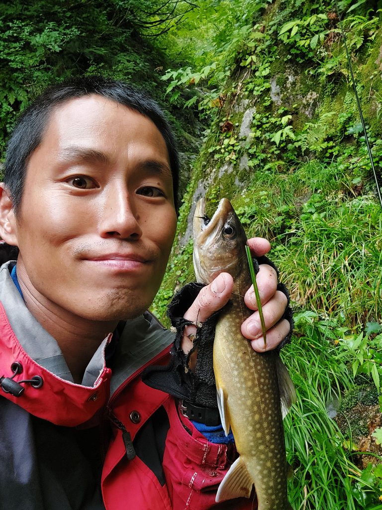 ヒョングリ滝を過ぎると朝7時。イワナ達も朝食時であり、一日で一番活性が高い。竿を出してみると20cm程のイワナが数匹、アッサリと釣れた。