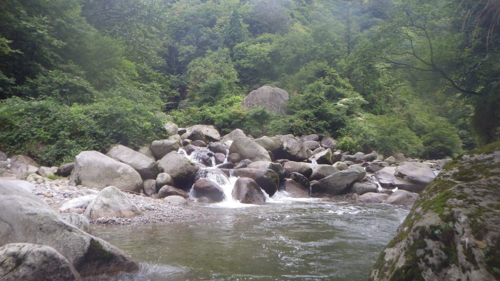 新潟の沢は最後は強烈なヤブ漕ぎというパターンが多いが、この沢はほぼ最後まで水流が続き、快適に登山道に出ることができた。