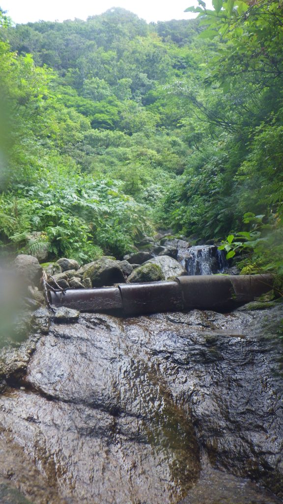 なんと人工物を発見。どうやら古い導水管らしい。現在も使われているようだが、一体誰がこんな所まで整備しに来るのだろう。