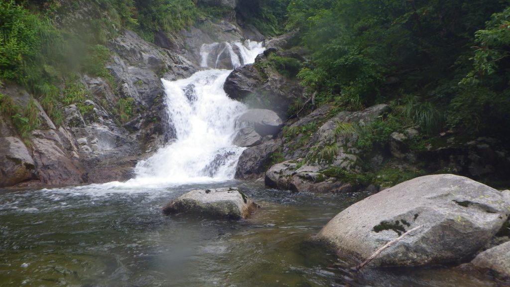 なんか思ったより細い支流で、本当にこの先に大滝があるのかと思う。しばらくゴーロ歩きで、かなり長い。ルートファインディングが重要だが、こういうのは得意。途中で2段5M滝が出てきたので泳いでみる。真夏なので快適。