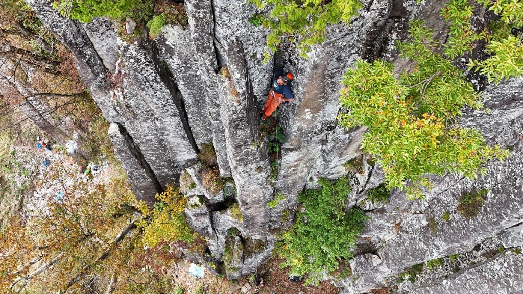 クライミングゲレンデとして開拓を進めている秋山郷布岩。この岩場でやってみたい事がありました。