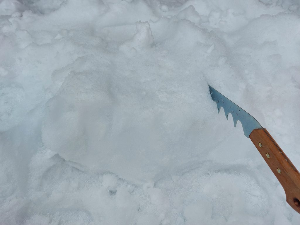 こんな時はイグルー作りに使うスノーソー。まさか山以外で使うことになるとは。
