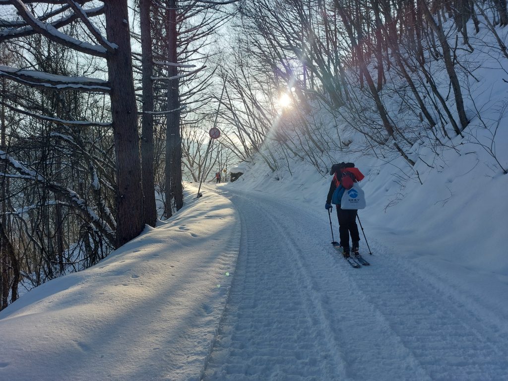 スキーなので下りは楽ですが登り返しもあり、地味にきつい。ギリギリ日没までには降りてこれました。