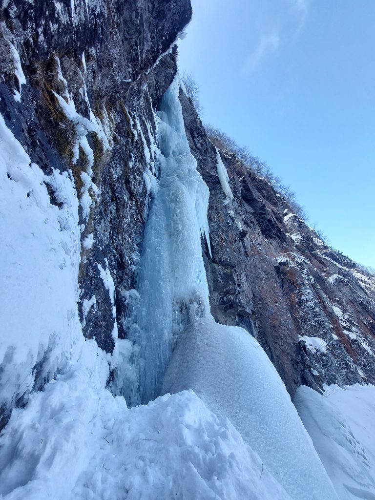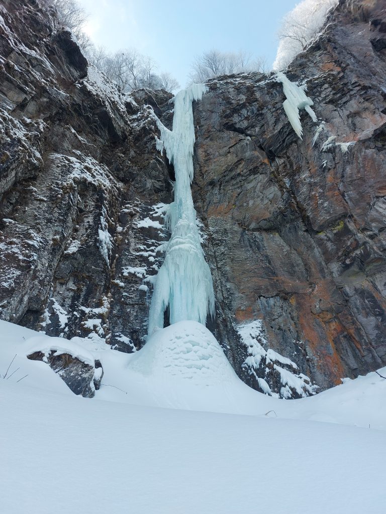 アイスクライマー憧れの大氷瀑が何本もありますが、アプローチの遠さと氷瀑の大きさ、難しさもあってか八ヶ岳ほど訪れる人はいない上級者向けのアイスゲレンデ。