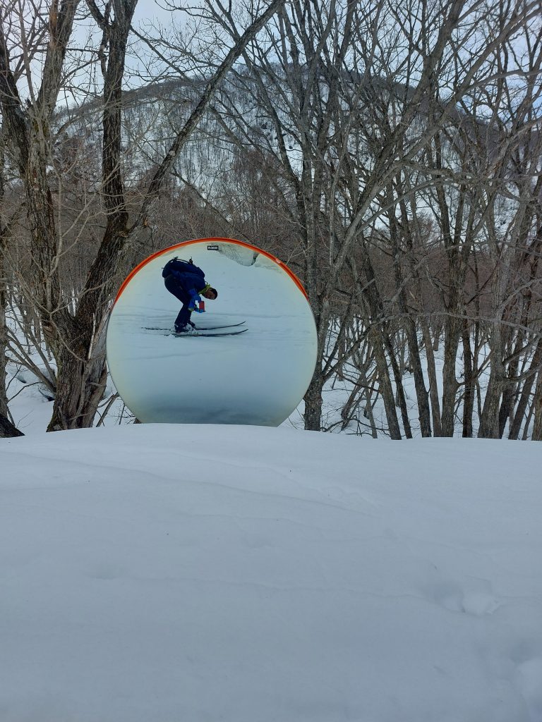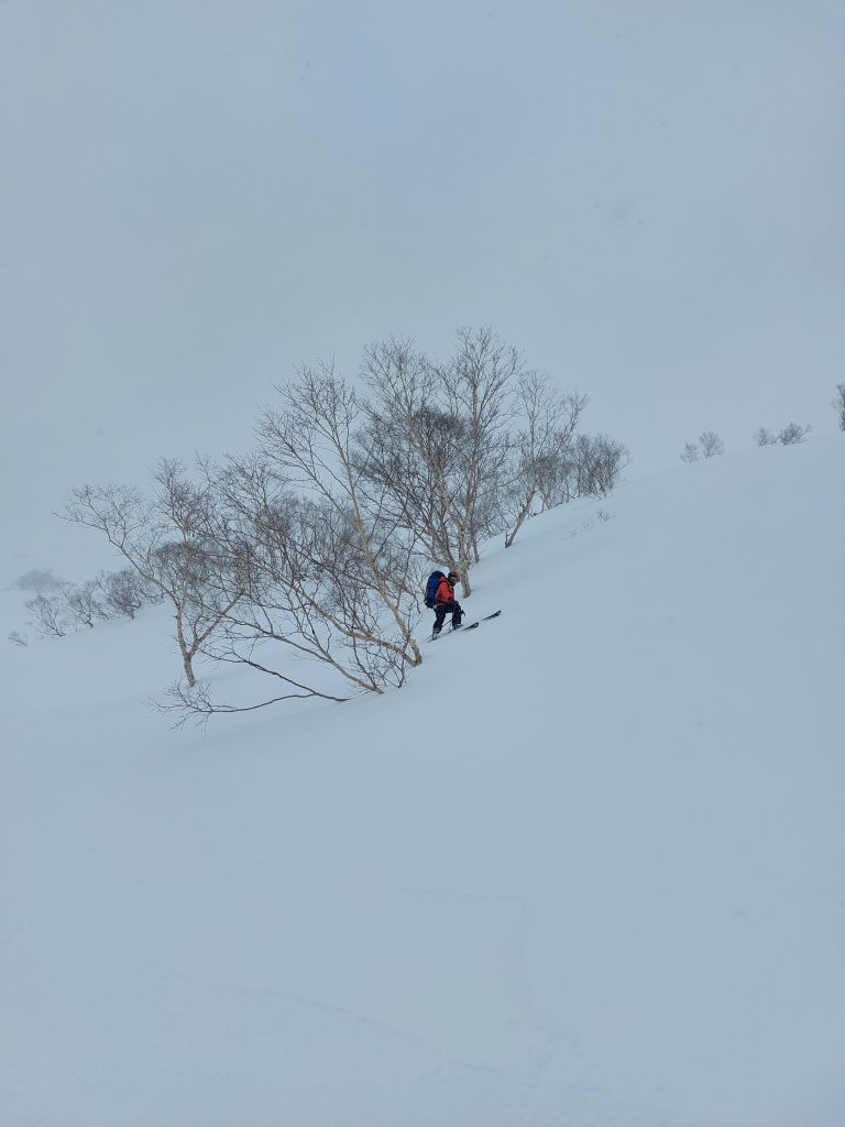 最近こんなのばっか(´;ω;`)できるだけ木の近くを滑り、平衡感覚だけでも維持。