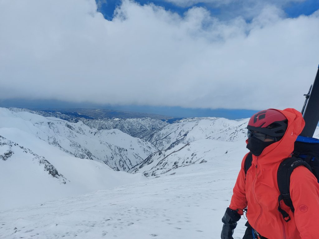 途中怪しい天気になりましたが、日本海が見える絶景。ガスってはいるが隣の立山や劒も見えました。
